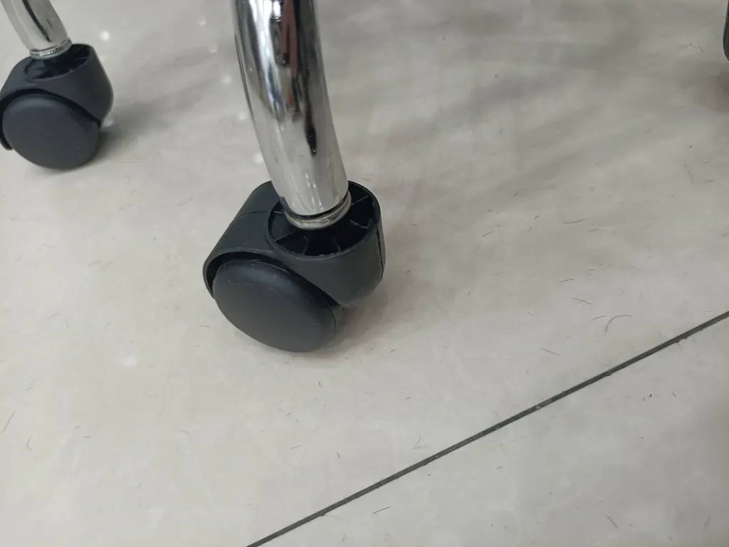 The 360° silent swivel mechanism allows quick and efficient movement during beauty or styling tasks, while the SGS-certified gas lift delivers smooth and safe height adjustment. Its chrome-plated metal base ensures durability and stability, suitable for heavy, continuous use in commercial environments. Equipped with silent universal casters, the stool glides effortlessly across floors without leaving marks.