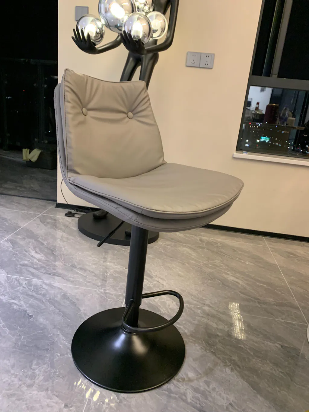 Designed for modern kitchens and contemporary interiors, this adjustable bar stool with microfiber leather upholstery offers a refined balance of comfort, durability, and visual elegance.