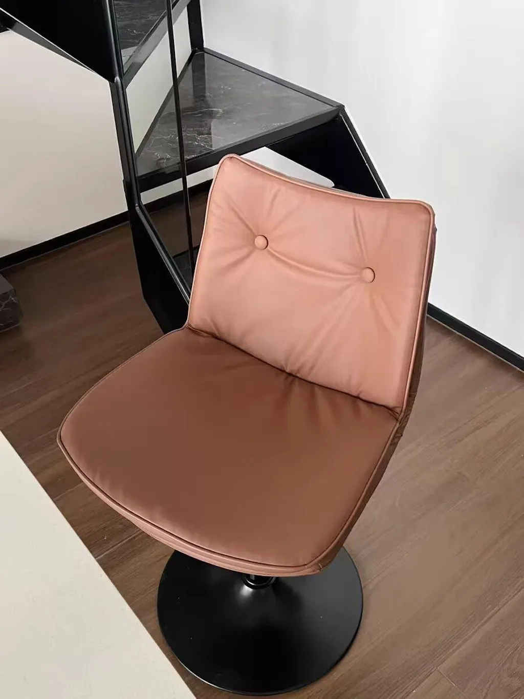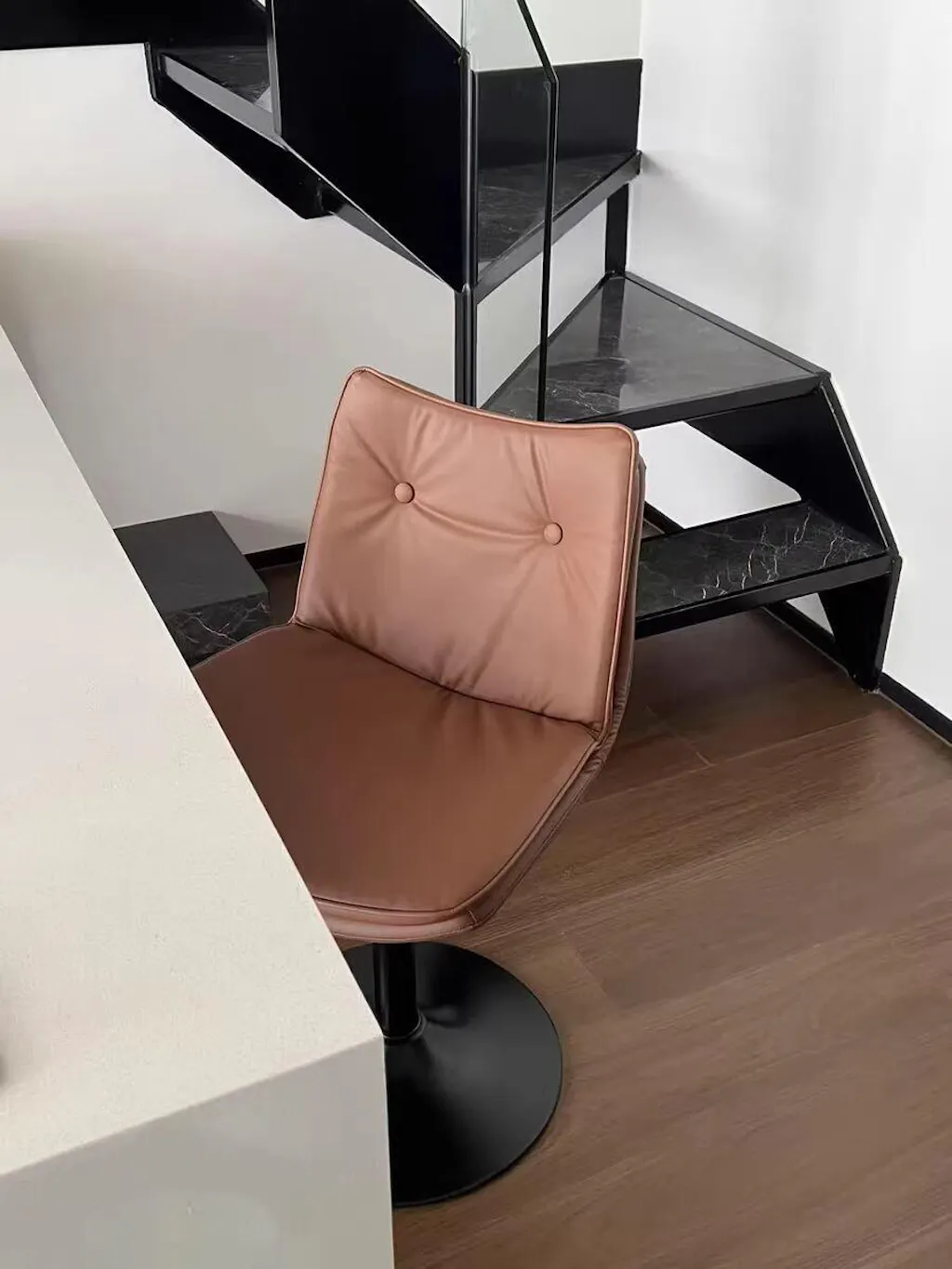 Finished with a matte black metal base, this stool pairs seamlessly with modern, minimalist, and urban interiors, making it a versatile choice for both residential and hospitality environments.