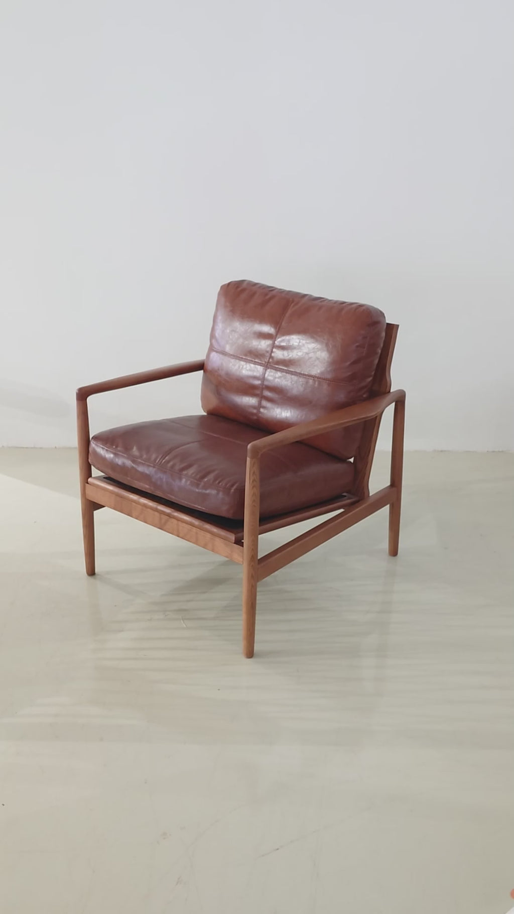 Premium PU Leather Upholstery – Made with eco-friendly PU leather, smooth to touch, durable, and easy to maintain.Solid Wood Frame – Crafted from durable ash wood, offering stability and refined grain detail.Mid-Century Silhouette – Clean lines and slender armrests highlight a Scandinavian aesthetic with a vintage touch.Ultimate Comfort – Loose cushions filled with a high-density sponge and down blend ensure superior comfort and resilience.Versatile Arrangement – Perfect for living rooms, lounges, reception areas, or boutique hotels.