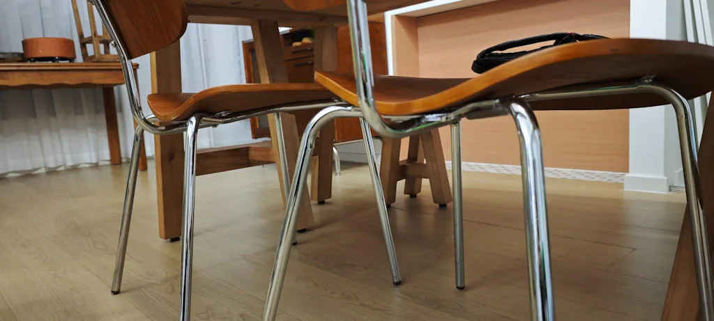 A: Protective foot pads prevent scratches when properly maintained. The chairs come with soft rubber or felt pads on bottom of each leg creating barrier between metal and floor. Prevention: (1) Check pads regularly—replace when compressed, worn through, or detached (every 12-18 months residential, 6-9 months commercial), (2) Lift chairs when repositioning—lightweight 4-5 kg makes this easy (versus dragging which tests pad adhesion), (3) Use furniture sliders for frequent moving (glide pads enabling smooth sliding). Note: The foot pads are more critical for chrome/silver legs (harder metal) than black powder-coated legs (softer coating), but both need pads for floor protection.