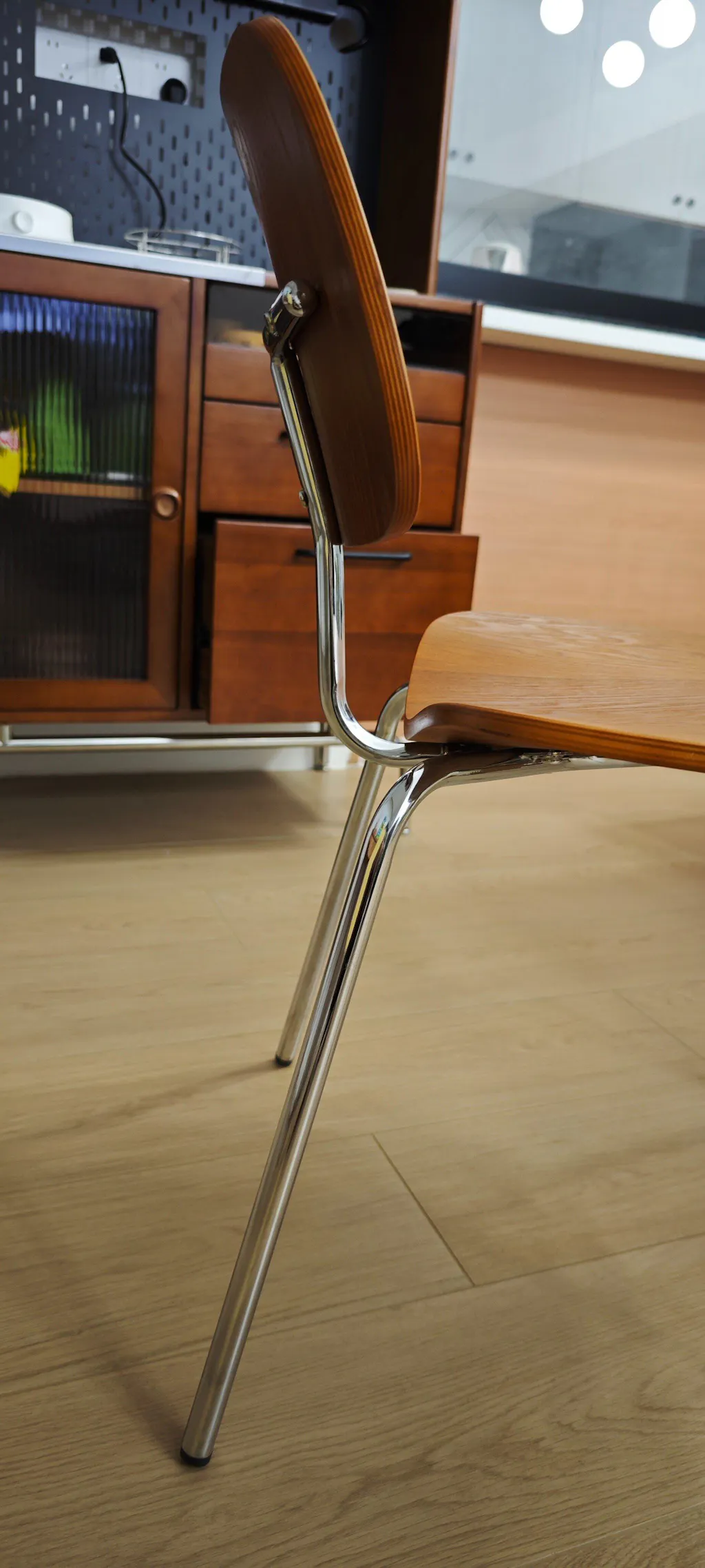 Light-reflecting brightness: Polished chrome reflects light creating airy spacious feel—particularly valuable in small or dark dining spaces